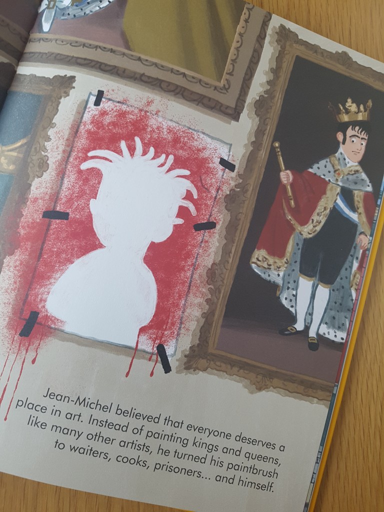 The book starts with Jean-Michel as a four year old, drawing and visiting museums, and shows us his very early influences, before taking us through his rise to fame – from his early days producing graffiti on buildings in Manhattan, to his meeting and befriending Andy Warhol, and them becoming “the craziest pair” on the art scene! His unfortunate death is not mentioned (good for more sensitive little readers), instead the book focuses on how prolific he was during his career, creating not only art and graffiti, but also music and poetry, and how he inspired many others.