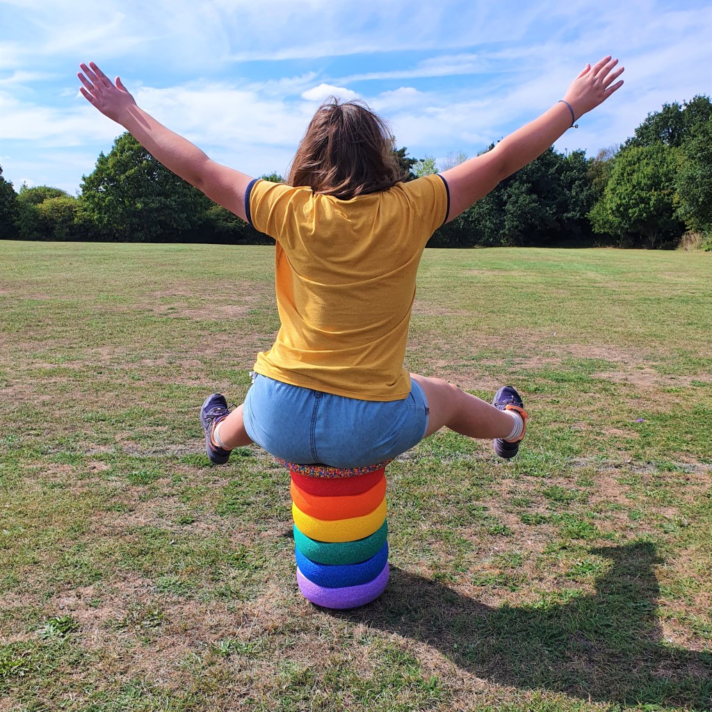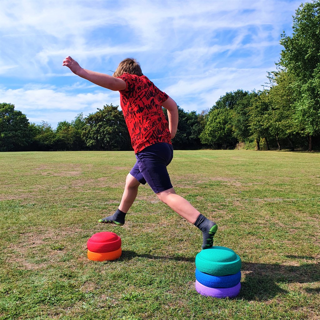 Our Stapelstein set is the “rainbow classic bundle stepping stones and board”, but there are bundles from 3 up to 9 pods, and you can even buy single pods and wobble boards to keep adding to your collection! (And UPDATE!!! Check out the new Stapelstein Inside sets for even more fun! Review here!) They really have been a huge hit with our kids and are much loved – I’m sure I’m going to get badgered for more!!! If you’ve got active, energetic kids, you’re definitely going to want to add some to your playspace! They’re absolutely fab!!!