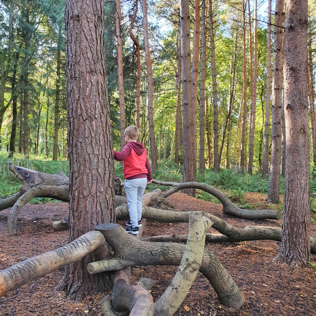 The main draw for families though, is the woodland nature playground! You won’t find traditional swings and slides here – in between the trees are logs for balancing, logs for climbing, a whole felled tree, and a human sized badger set!!! And kids just love it! It’s suitable for all ages – kids from toddlers right up to teens will find something to occupy themselves.