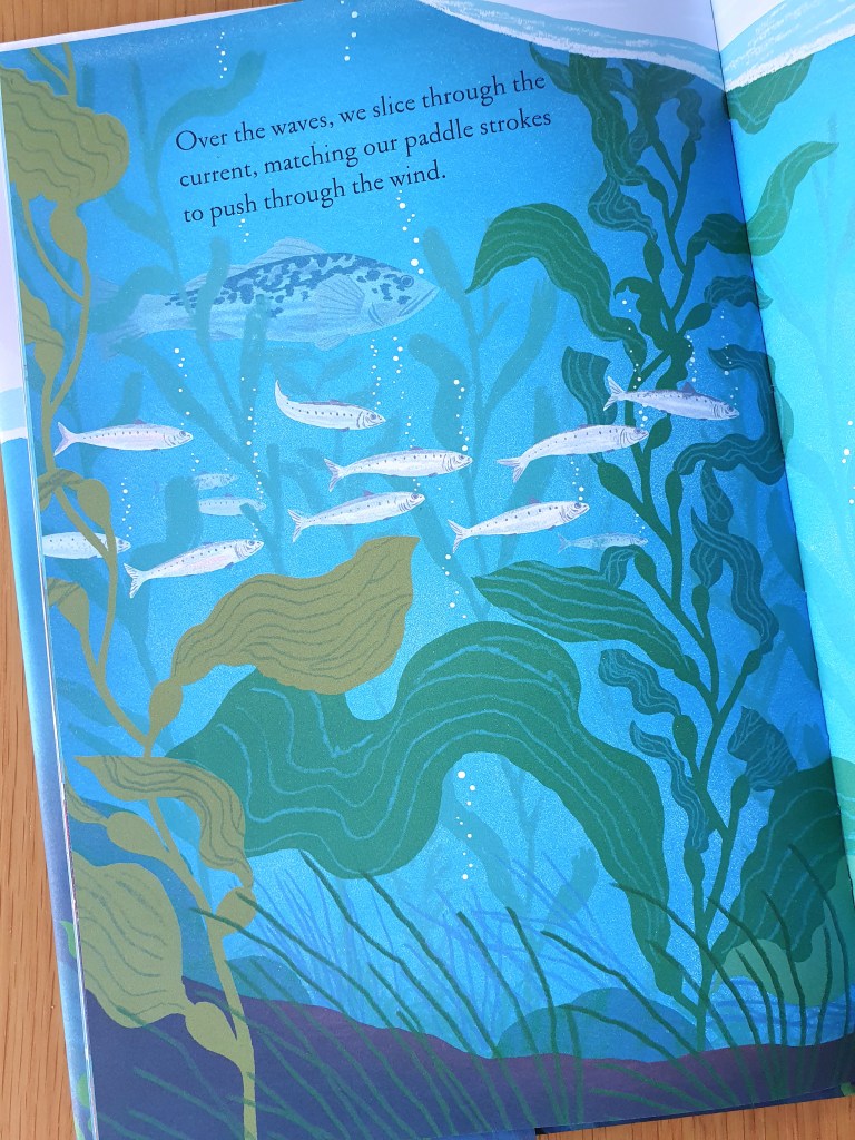 “Over the waves we paddle, away from the beach to the water’s deep blue.”