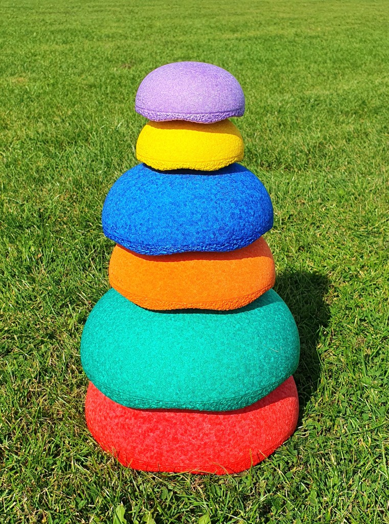 They’re the same super strong, yet super lightweight, 100% recyclable plastic that you’re used to in the classic sets. (Think really solid, un-dentable polystyrene, if you’ve not held one before – but that description doesn’t really do them justice!) If you build a tower with them, it’s not going to make a huge clatter as it falls down – fantastic for kids who don’t like loud noises – nor will they damage your flooring! And being so lightweight they float, so they’re brilliant for water play and adding to paddling pools for extra splashy fun! And, of course, they come in the same gorgeous rainbows of colour you’d expect from Stapelstein – there’s both bright and pastel sets.